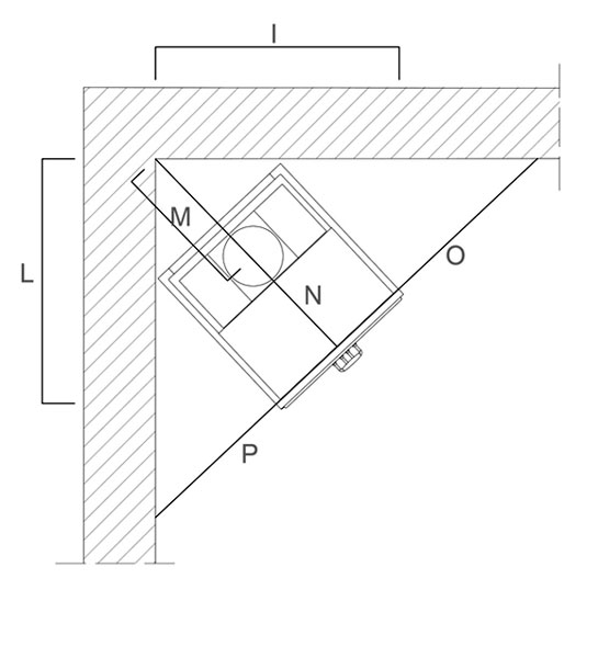 La forma geometrica ottimizzata del termocamino, ad angoli posteriori obliqui, lo rende flessibile ed adeguato per ogni specifica esigenza di posizionamento, sia su parete piana che angolare che con la massima riduzione degli ingombri.